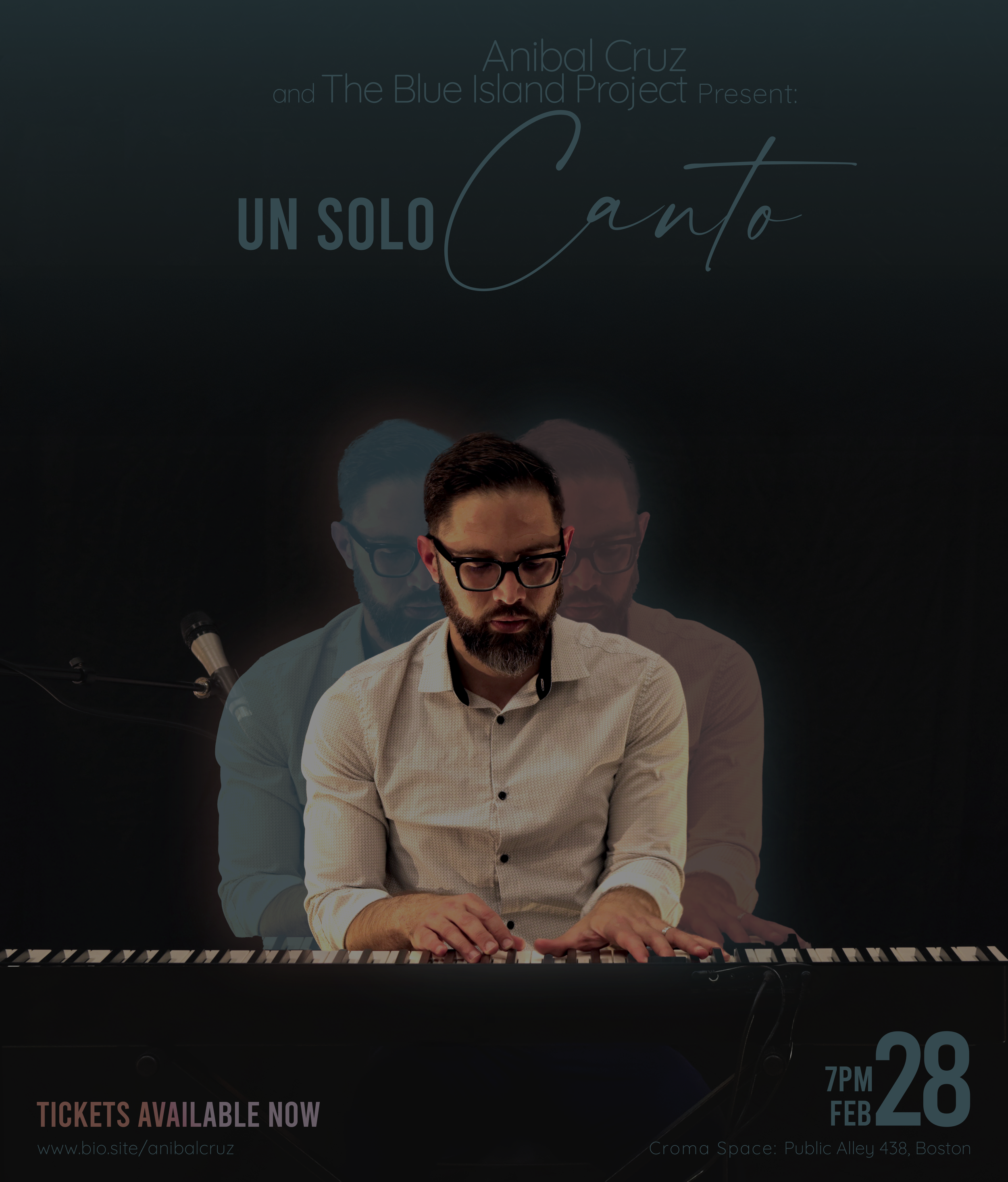 El artista Aníbal Cruz, como parte de la Residencia Open Doors, llega al escenario con una colección poderosa e íntima de canciones de toda América Latina. Acompañado por Blue Island Project y destacadas voces y pianistas de Boston, este concierto es un homenaje sentido a la tradición y al nacimiento de su música original.