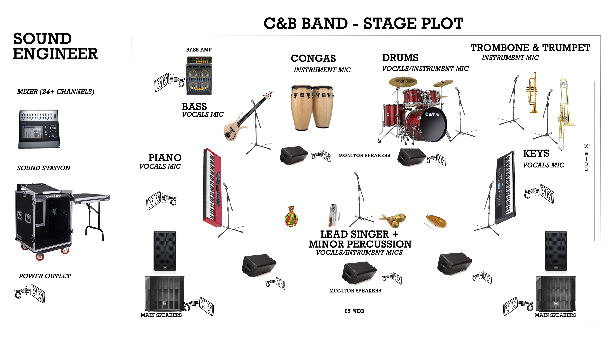 (4) Microphones - Vocals | Shure SM-58 or Sennheiser @ Lead singer, Singer, Piano, Bass, Congas.